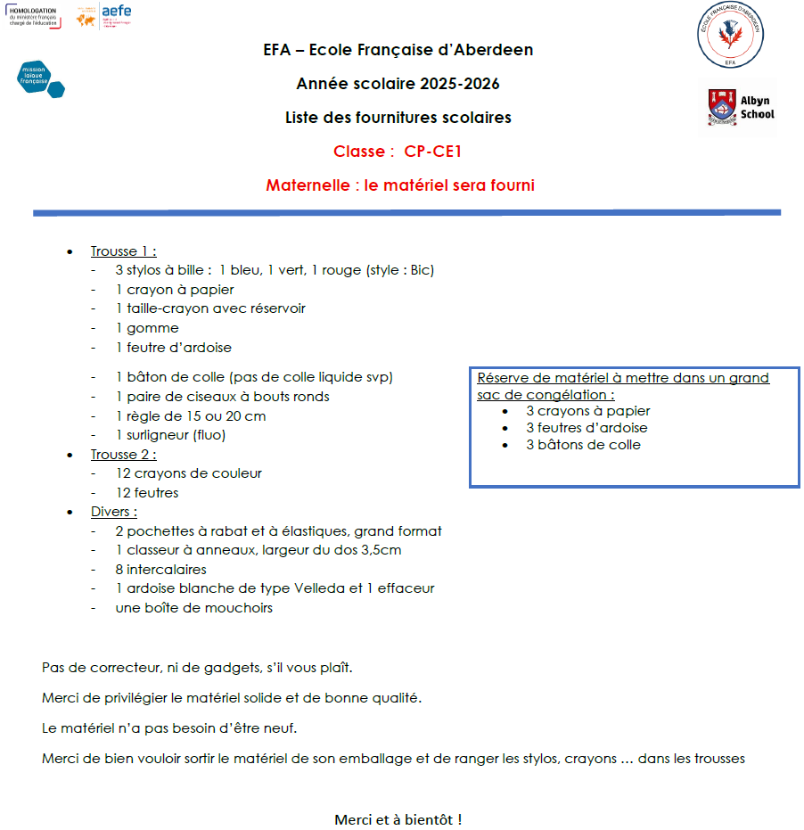 Bienvenue à l'école Française d'Aberdeen