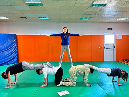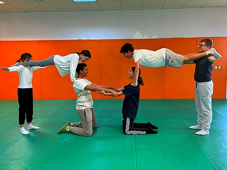Les collégiens, ayant souhaité aller plus loin, ont entrepris de réaliser des figures acrobatiques plus complexes, dans le cadre confiné de la salle de sport. La galerie, ci-dessous, vous présente celles qu’ils ont réussies.