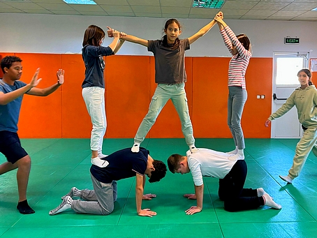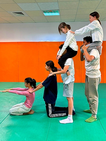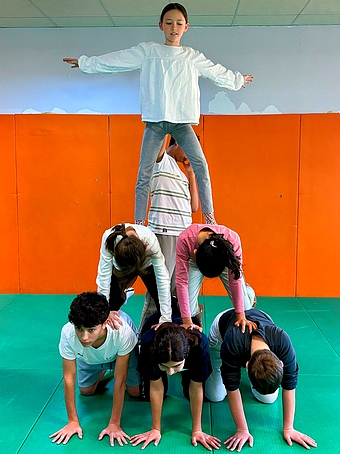 Au cours de la seconde période de l’année scolaire, les élèves de l’élémentaire et du collège ont suivi un cycle « Acrosport » en EPS. Cela a abouti à la présentation d’un numéro chorégraphié, très apprécié, lors du spectacle de Noël de l’école.