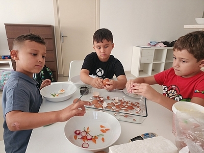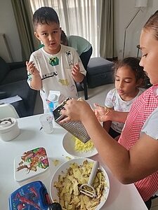En pratique, ils se sont exercés à éplucher des pommes de terre, battre des œufs, mesurer des quantités, pétrir, étaler de la pâte, etc. Leurs recettes préférées ont été les palmitos, les mini-pizzas et le pain perdu.