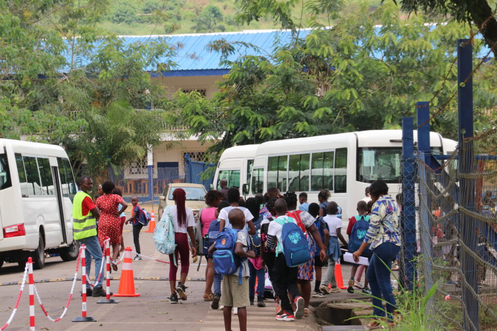 Chaque matin, des bus scolaires récupèrent les enfants usagers des transports scolaires en certains points de ramassage désignés et les déposent avant 7h30 devant le portail de l’école. À la fin des cours, les élèves sont pris en charge et accompagnés jusqu’aux bus, garantissant un embarquement sécurisé.