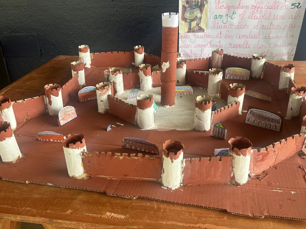 Dans le cadre d’un projet pédagogique, les élèves de CM1B se sont plongés dans l’univers fascinant de l’Antiquité. Pendant quatre semaines, ils ont reconstitué trois sites emblématiques : une ville romaine, un village gaulois et Massalia ( actuellement Marseille, en France).