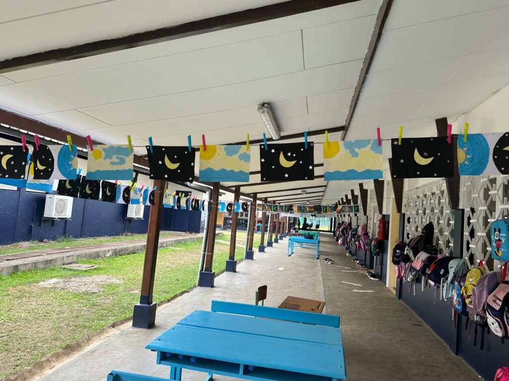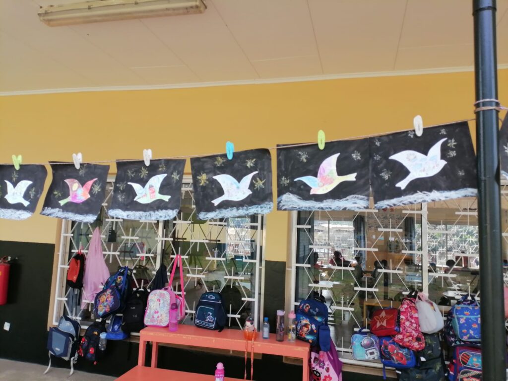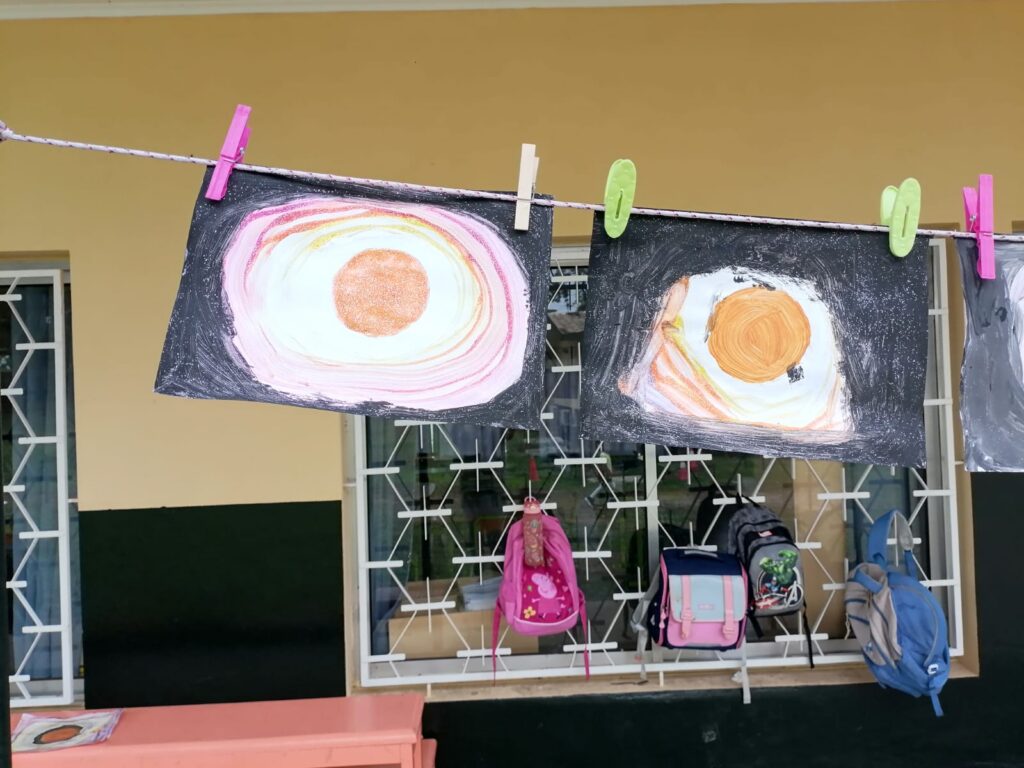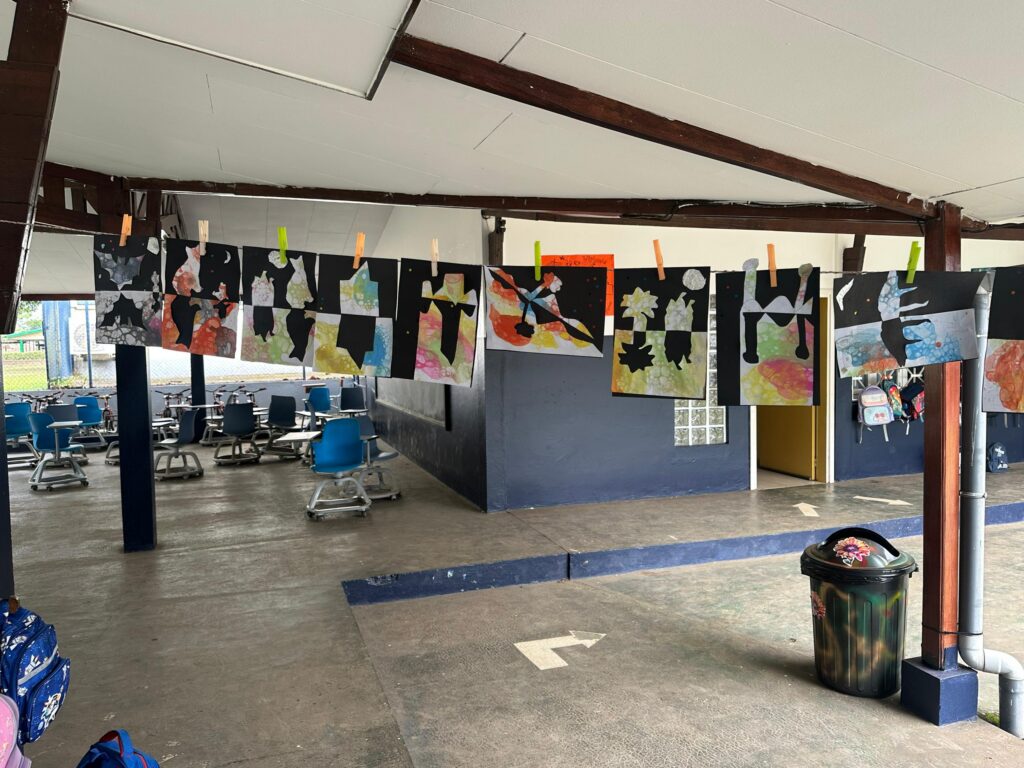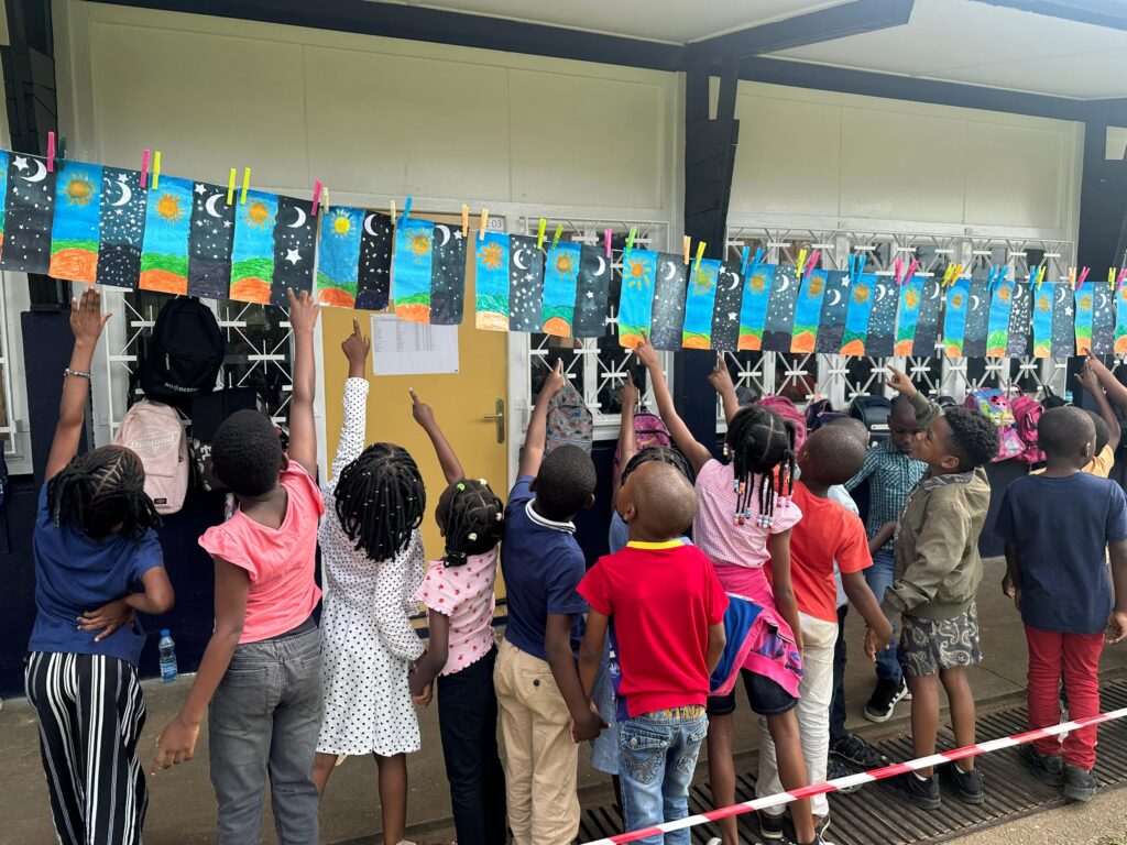 L’École primaire MLF Comilog participe cette année encore à l’exposition d’art internationale “La Grande Lessive”, qui s’est tenuele jeudi 16 octobre 2025 sous les coursives de l’école.