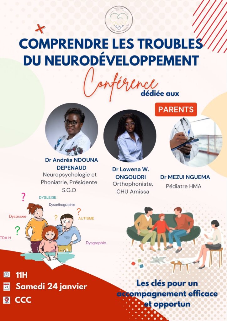 Ce samedi 24 janvier 2026, le lycée Henri Sylvoz accueillera Mme Andréa NDOUNA DEPENAUD, présidente de la Société Gabonaise d’Orthophonie et Mme Lowenna Welcome ONGOUORI, orthophoniste pour des animations concernant les troubles du neurodéveloppement chez les enfants.