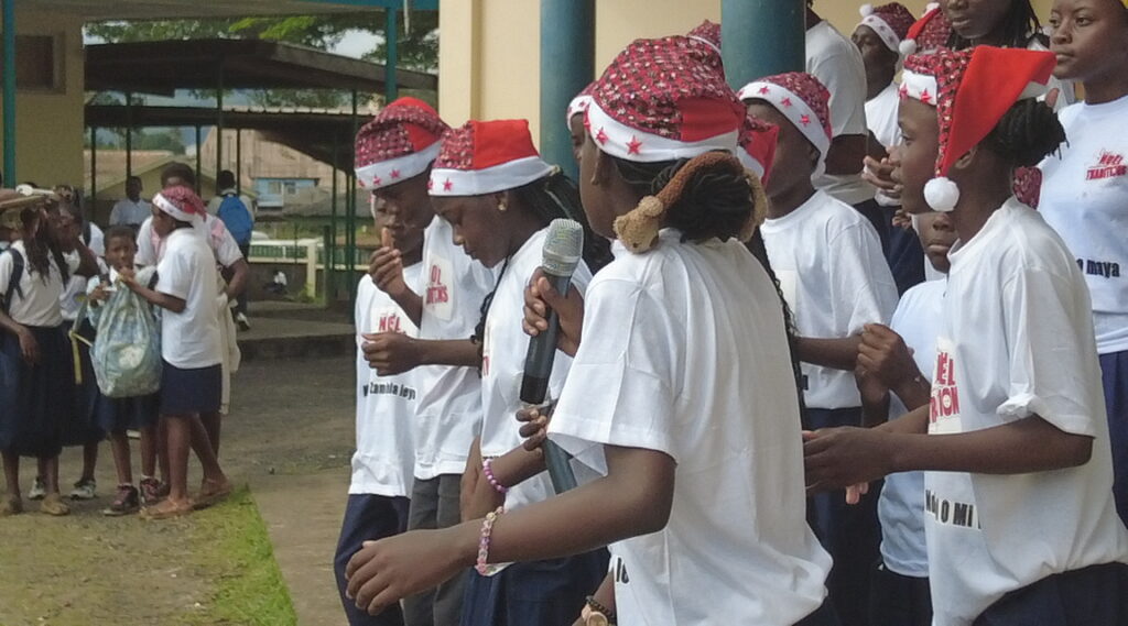 Le lycée Henri SYLVOZ a assisté à un spectacle en langue, offert par le club Culture gabonaise. Nous avons eu droit à des chants de la nativité, en fang en Obamba et en Nzébi.