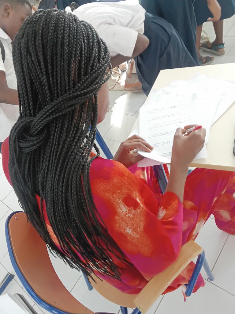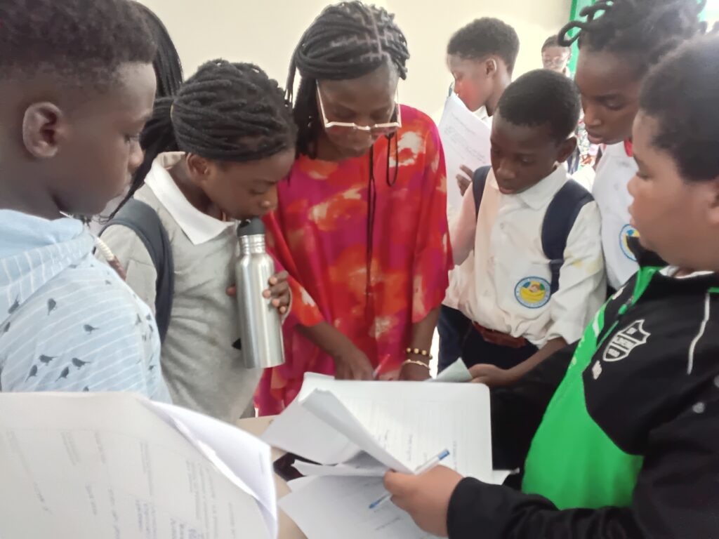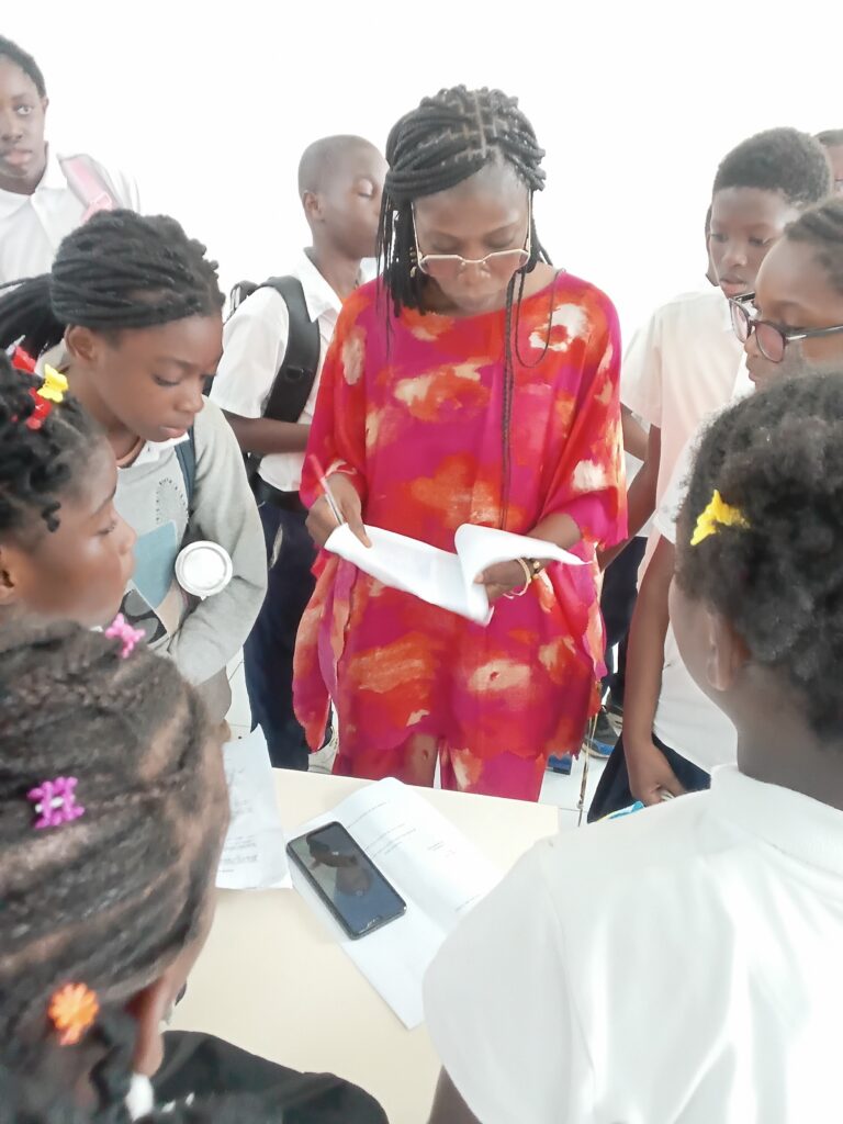 Après la phase des fouilles sur site, avec les élèves, il était important de soumettre ces découvertes à une archéologue. C’est dans ce cadre que nous avons reçu Mme OBAGAYELE Ornella, Archéologue et professeure à l’Institution Privée Marie NZABA de Franceville.