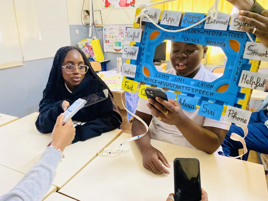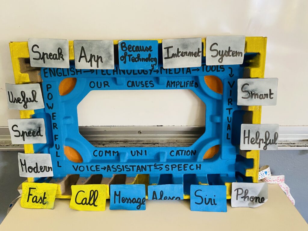 Speaking through their creation; « windows » a handful of students spoke about the useful virtual assistants like Amazon’s Alexa & Apple’s Siri, thereby taking us through technology, media tools vocabulary.