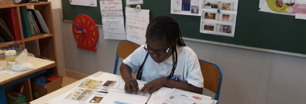 Les élèves de CM1 ont réalisé une exposition sur la Préhistoire qui sera présentée aux autres classes : des recherches, beaucoup de lectures, des choix d’informations à transmettre, du design,… une production qui nécessite de mobiliser de nombreux savoirs-faire et qui permet d’apprendre de façon active.