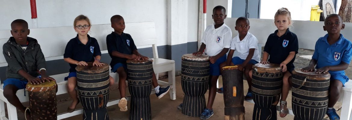Pour commencer l’année en musique, les classes de CP à CM2 ont participé à un mini stage de djembé: chaque classe a bénéficié d’une heure et demi de cours avec monsieur Serge. Voici les productions réalisées: