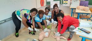 Et oui! les enseignants sont retournés à l’école comme élèves! Ils ont reçu une formation aux premiers secours : 7h de cours pour acquérir les gestes qui sauvent et les techniques de soins des bobos qui peuvent survenir pendant la journée à l’école. On peut être rassuré, ils sont au point maintenant!