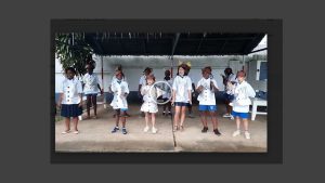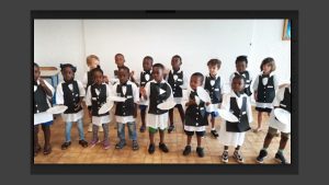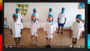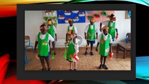 Alors, profitant de la Grande Lessive du 25 mars, un écran installé dans un coin du préau a permis de partager tous les chants enregistrés par les classes, en costumes réalisés en arts visuels. Le thème cette année était: les métiers.