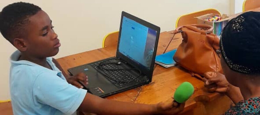 Lors des ateliers périscolaires , les élèves sont accompagnés par Mme Pacy Mpuanga journaliste auprès de la radio locale RCM.