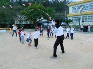 Ensuite, nous avons pu tester des jeux traditionnels des deux cultures et nous avons terminés par quelques courses et un grand « tire à la corde ».