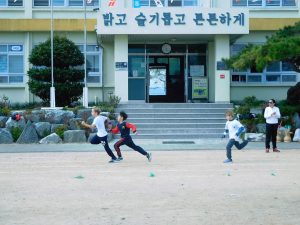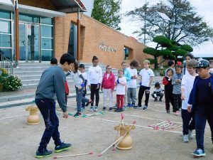 Cette école se trouve à environ 45mn de bus de la notre. Monsieur le Directeur et les professeurs, aidés de June (notre professeur de Coréen) ont tout d’abord rencontré leurs collègues de Chang Ho et ont échangé pour imaginer plusieurs actions que nous pourrions mener tous ensemble.