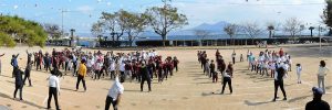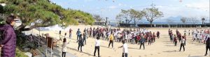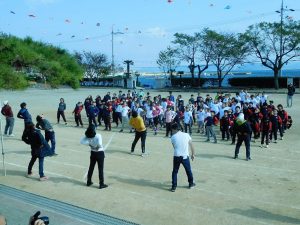Nous avons été reçus dans leur superbe école située face à la mer et nous avons été répartis en équipe, mélangeant les élèves des deux écoles et de tous les âges.