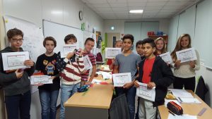 Lors de la remise des diplômes du Kangourou des mathématiques, le CSF était en fête! Tous diplômés! Bravo aux concurrents et bravo à Mmes Boullé et Persehaie qui ont mené le projet magnifiquement.