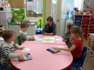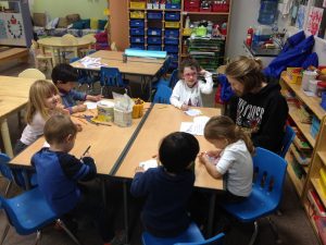 Tout au long de la semaine, tous les élèves du secondaire ont construit, colorié et accroché leurs hexagones. Ces hexagones sont visibles sur le mur, dans la grande salle du CSF. Certains d’entre eux ont même aidé les élèves de maternelle à colorier leurs figures géométriques.