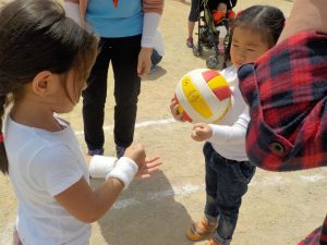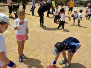 Lorsque les P’tits Loups sont arrivés, on leur a remis des poignées bleues ou blanches pour constituer les équipes. Les enfants du CSF ont été mélangés avec ceux de l’école de Chang-Ho.