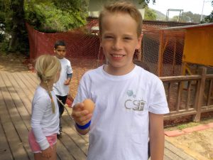 Nous avons vu une poule pondre un oeuf. Augustin a été autorisé à aller le chercher et un enseignant de l’école nous l’a offert pour l’étudier en classe.