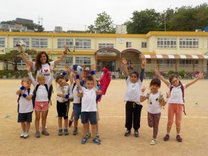 Lundi 8 mai, les enfants de l’élémentaire et de la GS maternelle ont été invités à l’école de Chang-Ho pour une journée sportive et ludique.