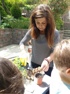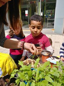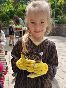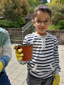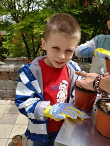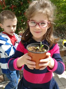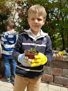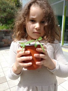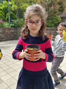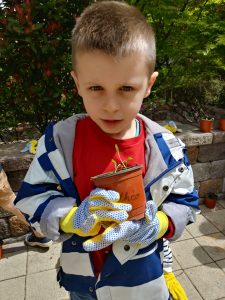 Les P’tits Loups de GS jardinent Les P’tits Loups ont transplanté dans des pots plus gros. Espérons qu’au retour des vacances, la pluie aura arrosé ces petites plantations sinon …