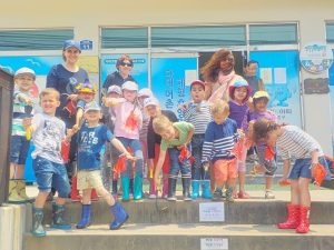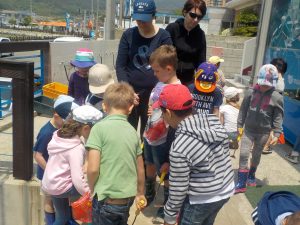 Nous mettons nos bottes et chaussures d’eau. Nous nos munissons d’un filet et d’un petit outil et nous voilà partis pour la grande Pêche du jour.