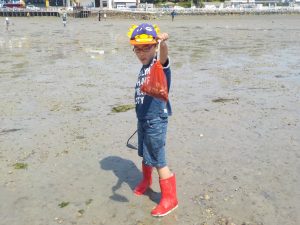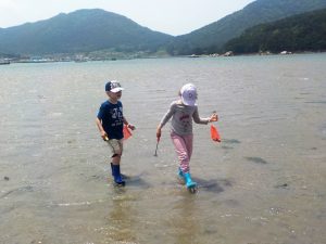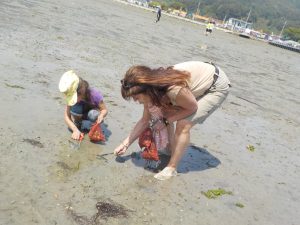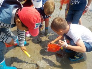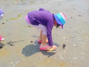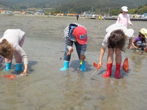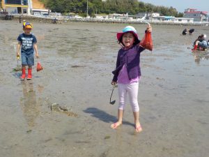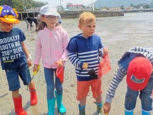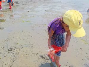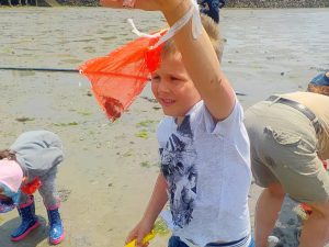 Des clams et encore des clams : les filets se remplissent et les enfants sont très fiers.