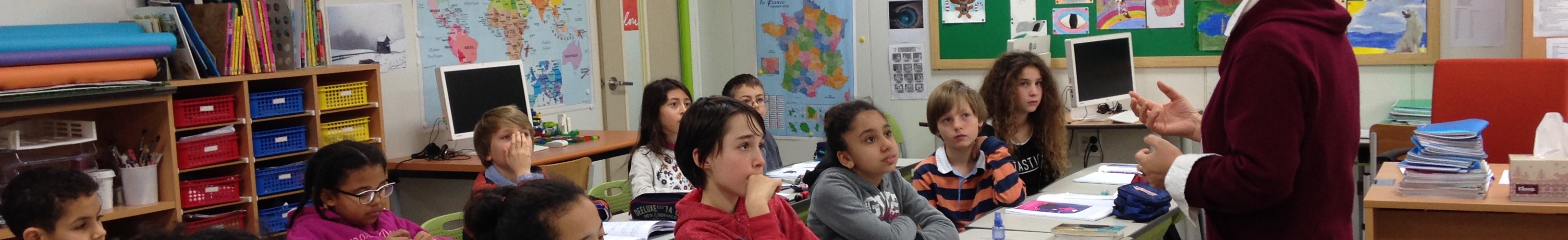Ce mercredi matin, Madame Lim est à nouveau avec les élèves de 6ème. La classe a été partagée en deux groupes et pour le premier groupe, il s’agissait de porter un regard critique sur la nouvelle écrite par les élèves individuellement ou à deux, et de travailler sur la structure narrative du récit et les personnages (héros/héroïne, opposants, adjuvants). Madame Lim a alors rappelé qu’écrire, ce n’est pas un acte à objectif purement personnel mais écrire, c’est partager une histoire avec ses lecteurs qui doivent prendre plaisir à vivre le récit.