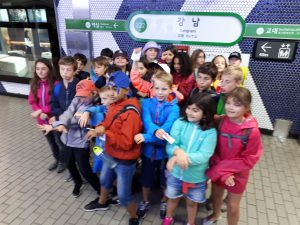 Nous sommes allés au musée des sciences. Nous sommes rentrés dans un planétarium et nous avons vu beaucoup de belles images. Après nous avons vu un spectacle de robots qui dansent. Nous avons vu plusieurs fossiles de dinosaures. Après nous sommes montés sur un train en forme d’éléphant. Pour finir, nous sommes allés à Samsung d’light. Nous avons joué aux jeux vidéo et nous avons essayé plusieurs objets électroniques Samsung. Pour le dîner, nous avons mangé des pizzas.