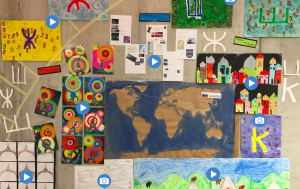 Les élèves des classes de primaire, à l’aide de leur mur coopératif, vous présentent le début de leur tour du monde.