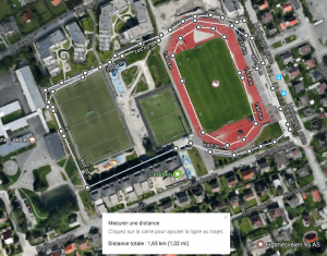 Un premier parcours a été mis en place. Il s’agissait de courir autour du terrain d’athlétisme (cliquez sur la photo du parcours) et de réaliser le plus de tours (5km à 7km ont ainsi été effectués).