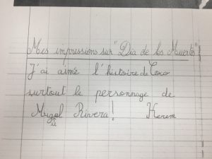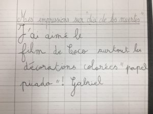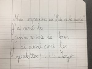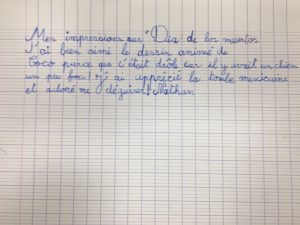 – J’ai bien aimé le dessin animé « Coco » car c’était bizarre que le petit garçon se retrouve dans le monde des ancêtres.