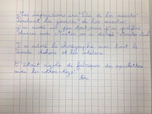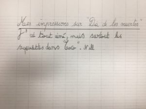 – J’ai beaucoup aimé l’autel des collégiens. La fête des morts est une fête traditionnelle au Mexique et je vous conseille de la faire ! Bref, merci beaucoup pour cette fête !