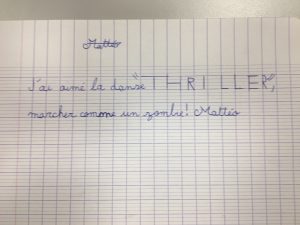 I liked when we described the film poster to the CM1, when we did activities and when we danced Michael Jackson’s “Thriller”.
