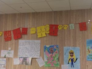 It was super! We did a lot of little activities. My favourite were colouring skulls and learning to dance on “Thriller”.
