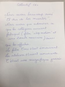 Pour finir, une production réalisée par les 5èmes. Un « stop motion » sur « el dia de los muertos ».