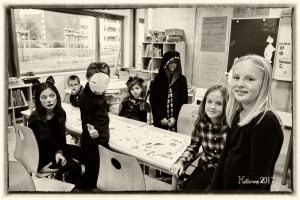 Pour l’activité 2, nous avons été pris en photo dans une certaine position avec des accessoires d’Halloween de notre choix. Nous avons fait des photos qui font peur… et, à la fin de l’atelier, nous nous sommes tous regroupés pour une photo trop rigolote!