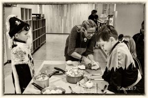 Le quatrième atelier était assez drôle.C’était un jeu. On avait des bandeaux sur les yeux et on plaçait le nez sur des sorcières ou bien, on plaçait des pièces pour reconstituer un squelette.