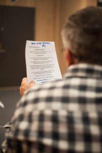 Les élèves ont réalisé des exercices théâtraux (placement de la colonne d’air, respirations, articulation) qui leur ont permis de se préparer aux répétitions de la pièce de théâtre Mangfold.