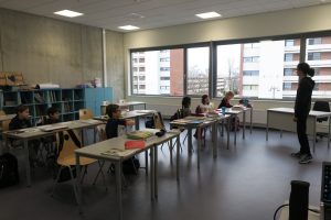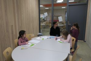 Les élèves du cycle 4 ont encadré, pendant une heure, les plus jeunes afin de rédiger un haïku (petit poème d’origine japonaise célébrant la nature et les émotions). Les professeurs ne sont pas intervenus, ils ont laissé les collégiens guider leurs élèves.