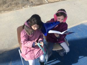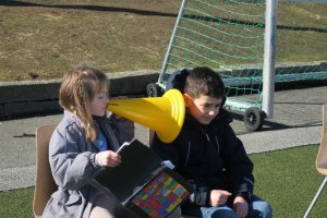 – Les souffleurs de vers: des élèves ont chuchoté des poèmes à travers de longs tubes à l’oreille des enfants du LFS mais aussi des écoliers norvégiens lors des récréations.
