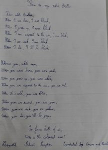 Paul Éluard et les petits poètes anonymes du Lycée Français de Stavanger ont célébré la liberté. A la manière du fameux poète, ils ont rédigé la suite du poème « Liberté » en respectant sa structure.
