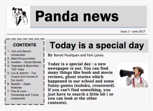The democratically chosen title (although you would think we’ve had enough of votes by now….) was Panda News, and students worked in pairs or alone to write different types of articles.