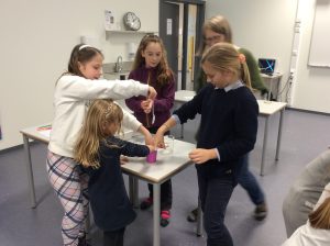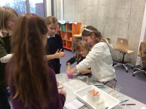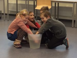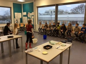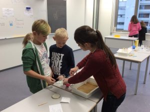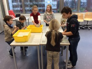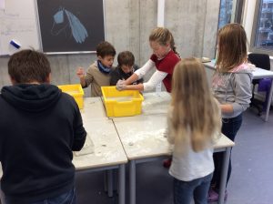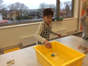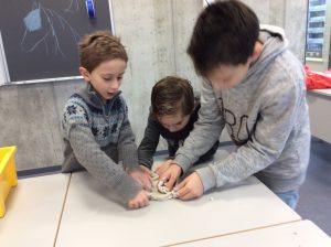 In this workshop the students had to make a boat out of clay and make it float with marbles in it.