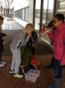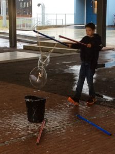 The aim of our activity was to make very big bubbles with soap, corn flower, glycerin and water, it worked very well.
