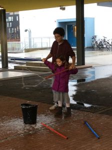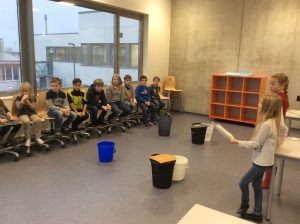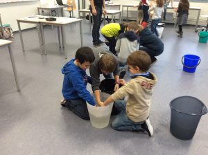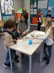 L’atelier “bateaux” nous a permis de partager un moment autour de la notion de flotte/coule avec des camarades plus petits. Chacun des animateurs avait un rôle bien défini. Il y avait les traductrices, les donneurs de consignes et d’autres qui aidaient et accompagnaient.