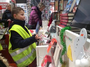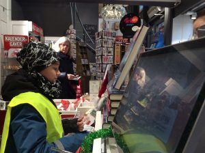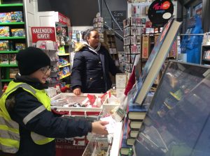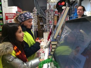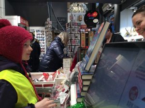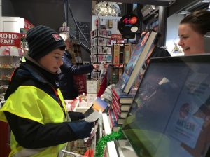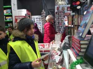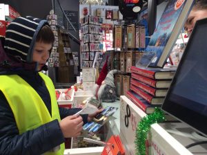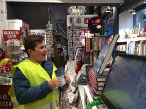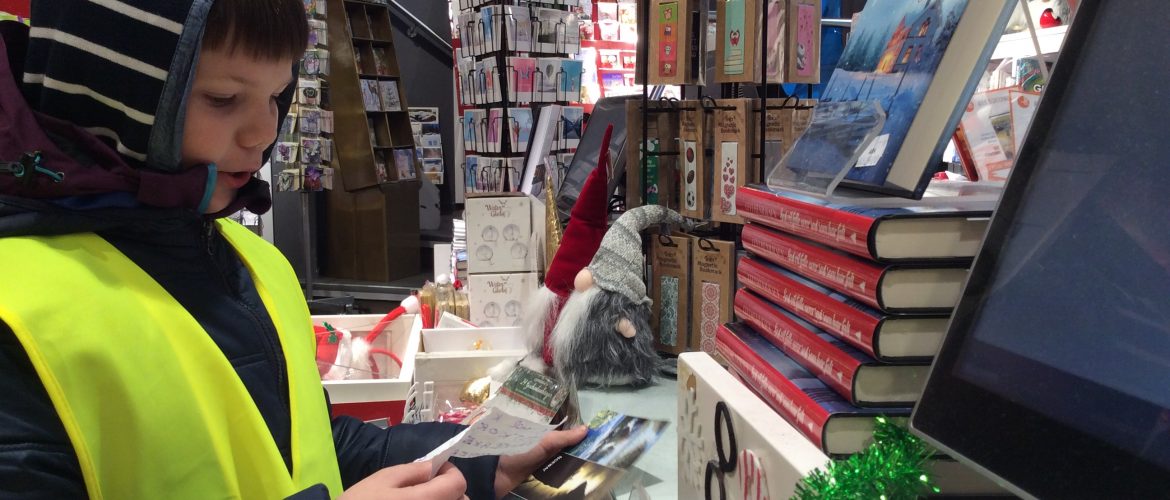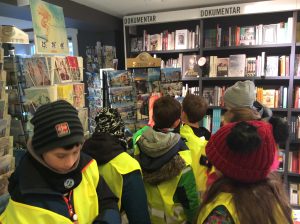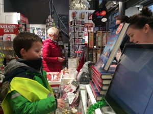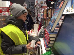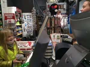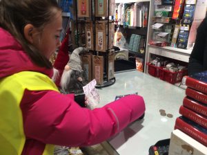 Dans le cadre du projet « Cartes postales du monde », les CM1/CM2 sont allés en ville acheter des cartes postales sur Stavanger ou sa région afin de les envoyer aux différentes écoles inscrites au projet. C’était l’occasion de réviser son norvégien car il a fallu que chaque élève se présente à la caisse et gère l’argent de l’achat. Heureusement, la vendeuse était très, très, très patiente et a joué le jeu jusqu’au bout (16 élèves !). Tusen Takk !