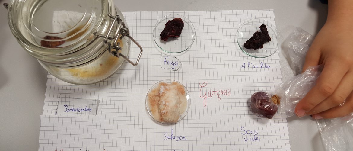 Les élèves de 6° ont pu expérimenter différentes techniques de conservation des aliments en classe. Pour cette expérience plusieurs morceaux de viande bovine ont été sélectionnés. Les différentes techniques utilisées ont été :