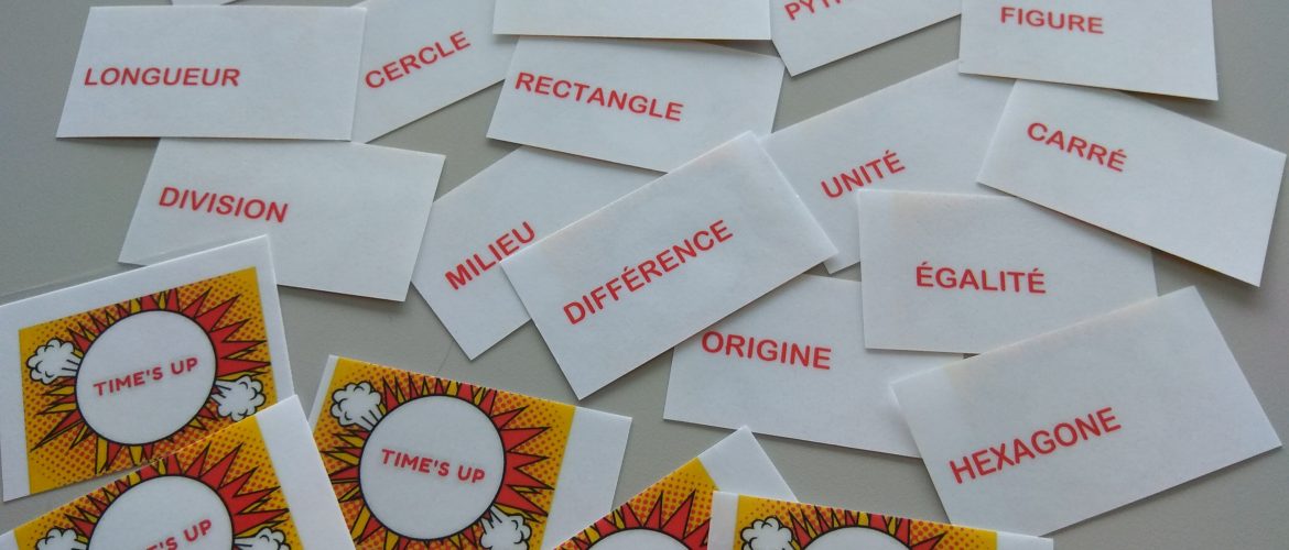 Dans le cadre de la semaine des maths, les élèves du collège ont eu l’occasion de s’affronter lors d’un Time’s up. Dans cette version du jeu, le but était de faire deviner à son équipe en une minute le plus de mots possible… Des mots empruntés au vocabulaire mathématique! Lors de la première manche, le joueur peut dire tout ce qu’il veut. Puis, lors de la deuxième manche, il n’est autorisé à ne dire qu’un mot. Enfin, dans la troisième manche, il s’agit de mimer les cartes…