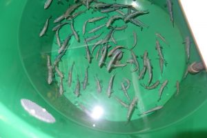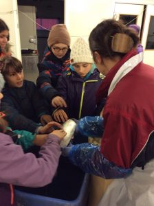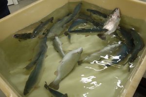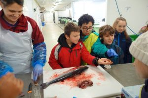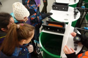 Puis, nous avons visité les locaux où ils s’occupent des saumons et le laboratoire de biologie et de chimie qui analyse les composants des croquettes ou le sang des poissons pour vérifier leur santé. Il y avait aussi une « mini » usine de fabrique de croquettes. Pour finir, nous avons assisté à la dissection d’un poisson !